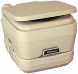 For convenience that lets you venture anywhere! Compact tanks, lots of capacity. 2.8 or 5.0 gallon (10.6 or 19 liter) holding tanks; enough for about 30-50 uses! Conventional top-mounted port offers easy in-vessel filling; self-contained 3.2 gallon (12 liter) freshwater supply. Durable design. High-density polyethylene construction provides strength and toughness; drop it, stand on it this unit can take it! Attractive matte finish. Scratch-resistant finish is easy to keep clean; looks new for years. Comfortable! Adult-size seat and lid provide both comfort and safety; side latches lock firmly in place for added safety. Versatile uses. Great for boats, RVs, trailers, vans, camping, cottages, trucks, bedside, potty training, work sites, and more! Simple to winterize and maintain. All parts and seals are user replaceable.