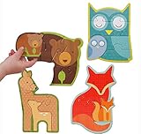 Progressive puzzles grow with kids. As preschoolers master the 3 piece puzzle, they then progress to the 4 piece, 5 piece and 6 piece puzzles. Four puzzles included in each set. Easy slide box allows for quick clean-up. Packaging and box made with 80-percent recycled content. Printed with vegetable based inks. Conforms to CPSIA and US ASTM standards. Ages 3+.